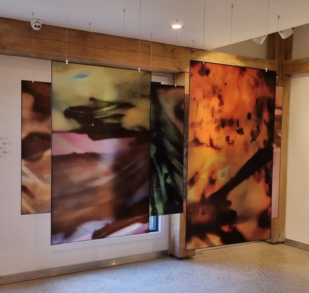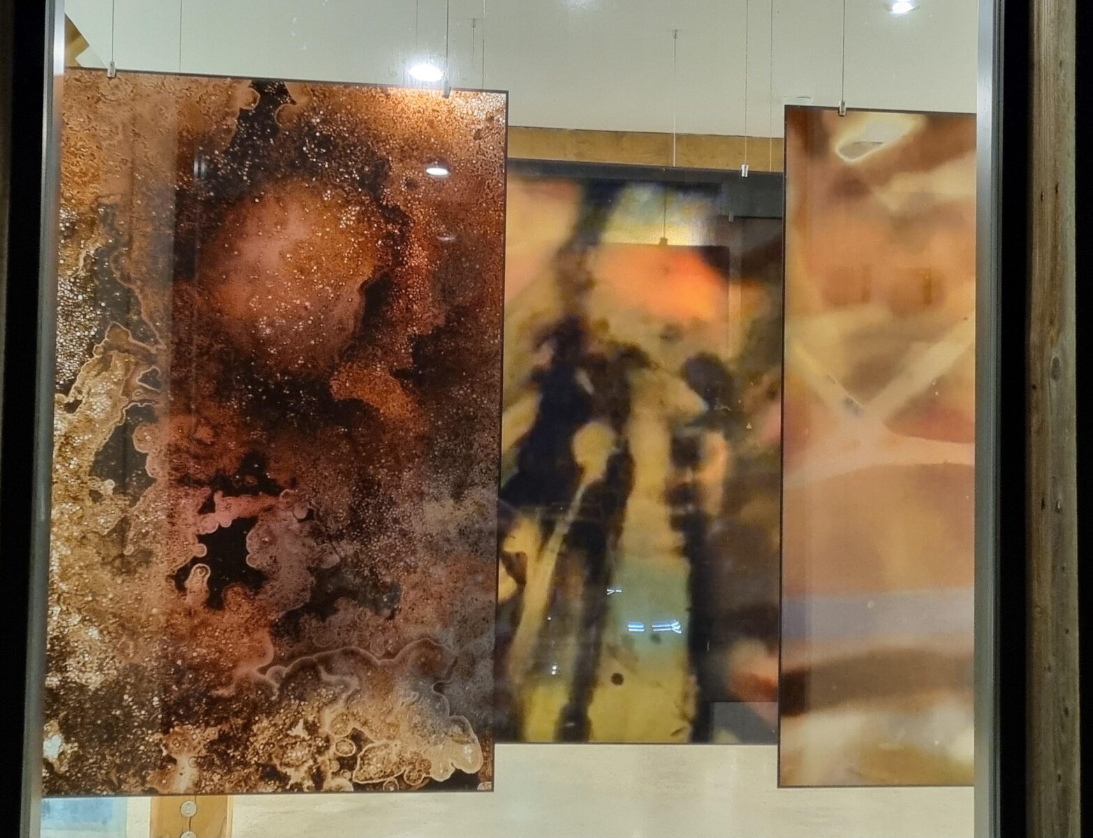 New works created for the sėntinėl show, are based on the landscape and how we are no longer in tune to the vibrations and murmurs of the land and nature around us. For the last few months I have been creating organic films on expired 16mm film and experimenting with sound scapes. Allowing the images to be created organically in a contained chaos, of their own worlds. I have created an installation from stills of the films printed onto cellulose panels suspended for us to walk through and engage with the start and end of life.